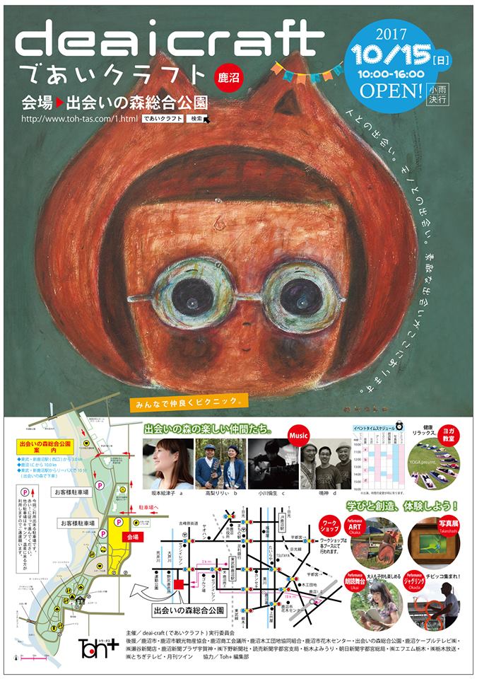 10月15日に栃木県鹿沼市出会いの森総合公園で行われるdeai-craft(であいクラフト)に出展することになりました。deai-craftは100名以上が参加する大きなイベントです。クラフト展以外にもライブやパフォーマンスなどがありますので一日楽しく過ごせます。