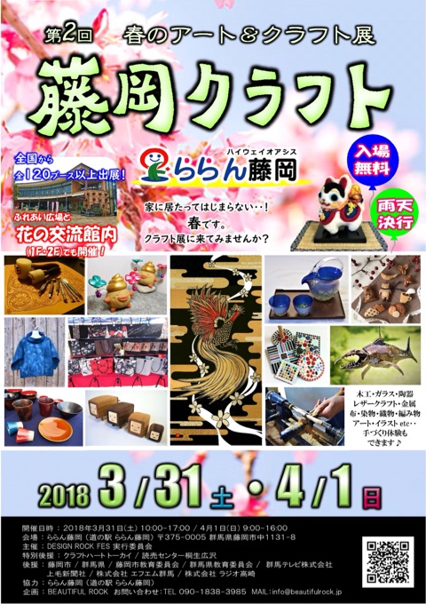 3月31日(土)、4月1日(日)に群馬県藤岡市の道の駅「ららん藤岡」で行われる第2回藤岡クラフトに出展することが決まりました。前回に引き続き2回目の出展になります。第2回 藤岡クラフトには屋外、屋内合わせて120組が出展します。