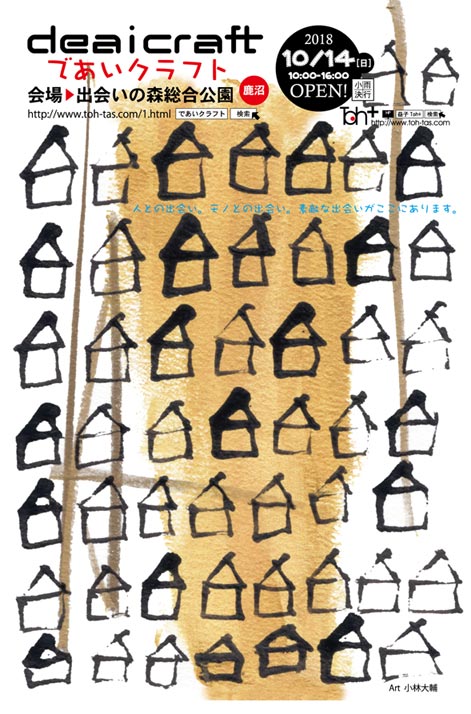 クラフトフェア10月14日に栃木県鹿沼市出会いの森総合公園で行われるdeai-craft(であいクラフト)に今年も出展することになりました。deai-craftは100名以上が参加する大きなイベントです。クラフト展以外にもライブやパフォーマンスなどがありますので一日楽しく過ごせます。