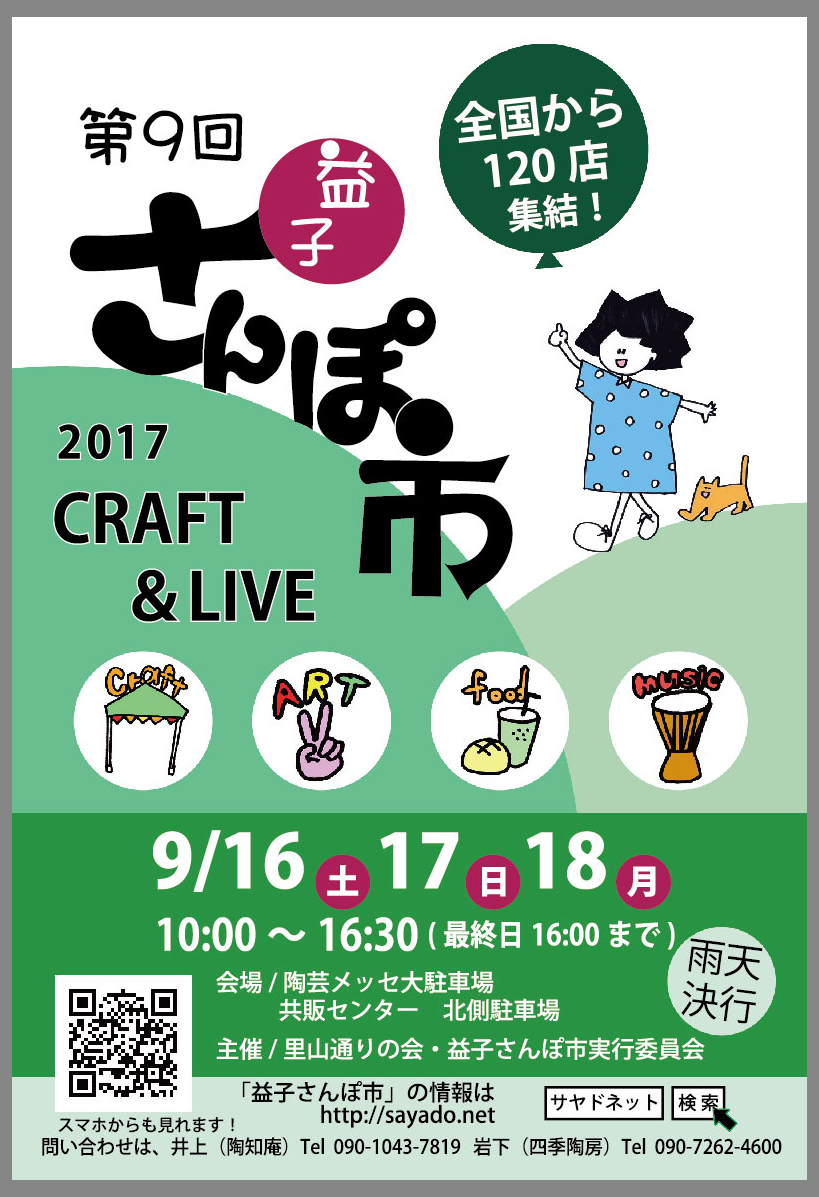 9月16・17・18日の3日、栃木県益子市で行われる第9回益子さんぽ市に出店することがきましました。益子さんぽ市は毎日イベントが盛りだくさんでいつ来ても楽しいイベントです。約120組のクラフトが出展するので見どころ満載です。 益子さんぽ市へ...